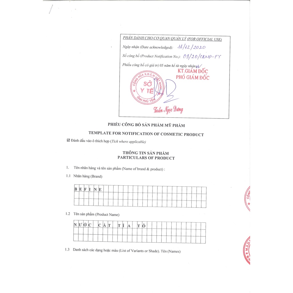 + Sản xuất tại Việt Nam bởi: Công ty Cổ Phần Befine